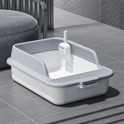 Open Cat Litter Tray with Waste Bags Storage and Free Scoop